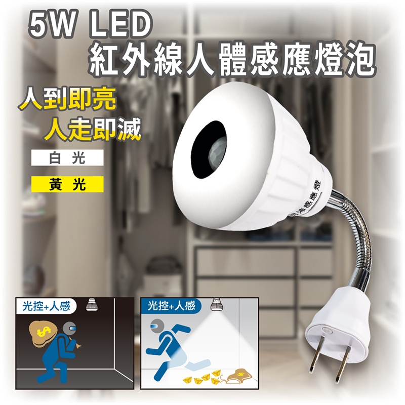 - 紅外線感應:人進入感應範圍內有微光燈不亮、空間全暗燈才亮。