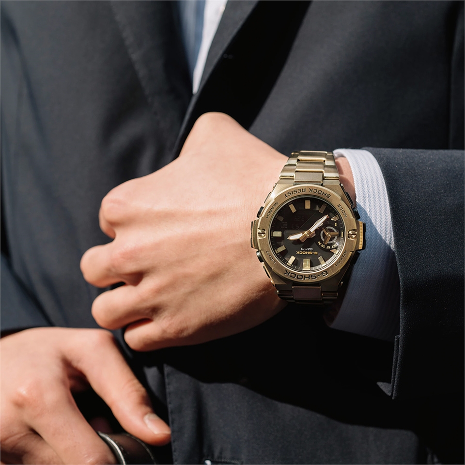 G-STEEL GST-B500系列,採用Carbon Core Guard 碳纖維核心防護構造,兼具強度與輕盈的優點。並以一體成形的部件取代以往雙層結構的錶圈,透過先進的金屬鍛造、切割與拋光技術,打造堅固且複雜的的形狀,並於不同表面上施以不同的拋光處理方式,包含髮絲紋、鏡面與搪磨分別對應不同表面,為腕錶各部件創造其獨特的外觀。 3D立體錶盤設計,採用雙層錶盤結構,以3D配置呈現刻度環、刻度、小錶眼環,搭配時針、分針、功能指針和獨特形狀的 LCD。 功能部分搭載太陽能電力能確保各種功能穩定運行,並擁有Bluetooth藍牙連結系統,可透過CASIO WATCHES 專用APP連結手錶,即可自動修正時間並設定各種手錶功能。