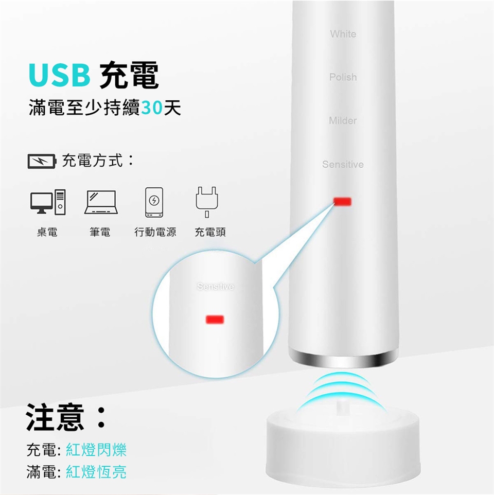 充電方式:USB 5V/1A (請自備充電器)