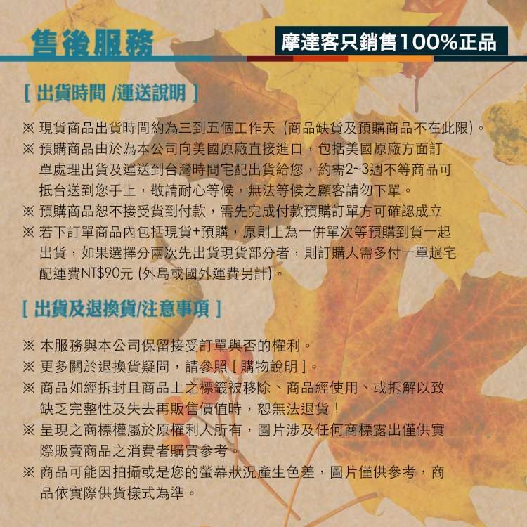 ● 所有商品均為新品,如有污損、短缺、或與訂購商品不符外,其餘恕不接受退換貨。