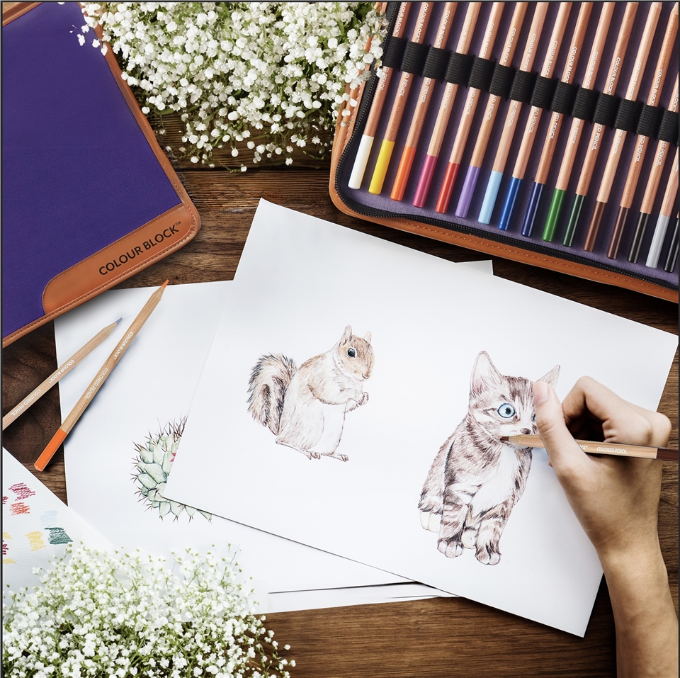 雪松手柄彩色鉛筆、十二色粉彩 搭上方便實用的繪圖小工具,