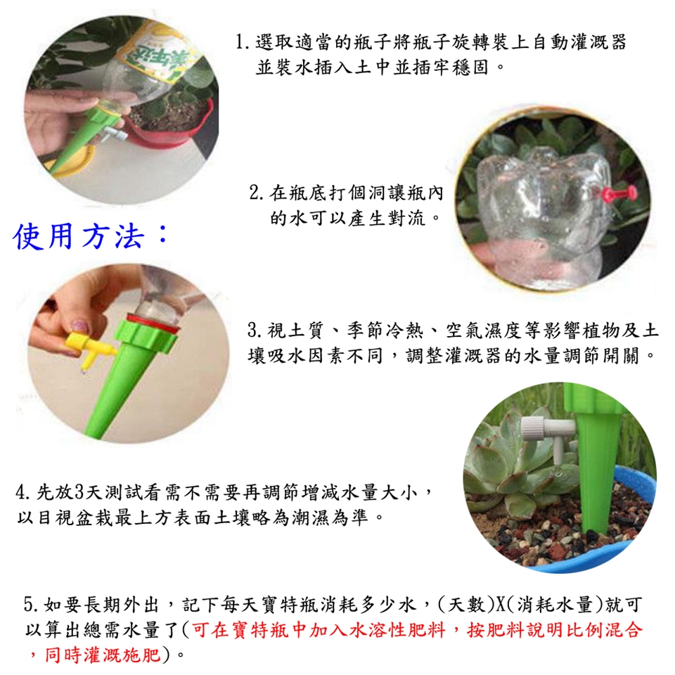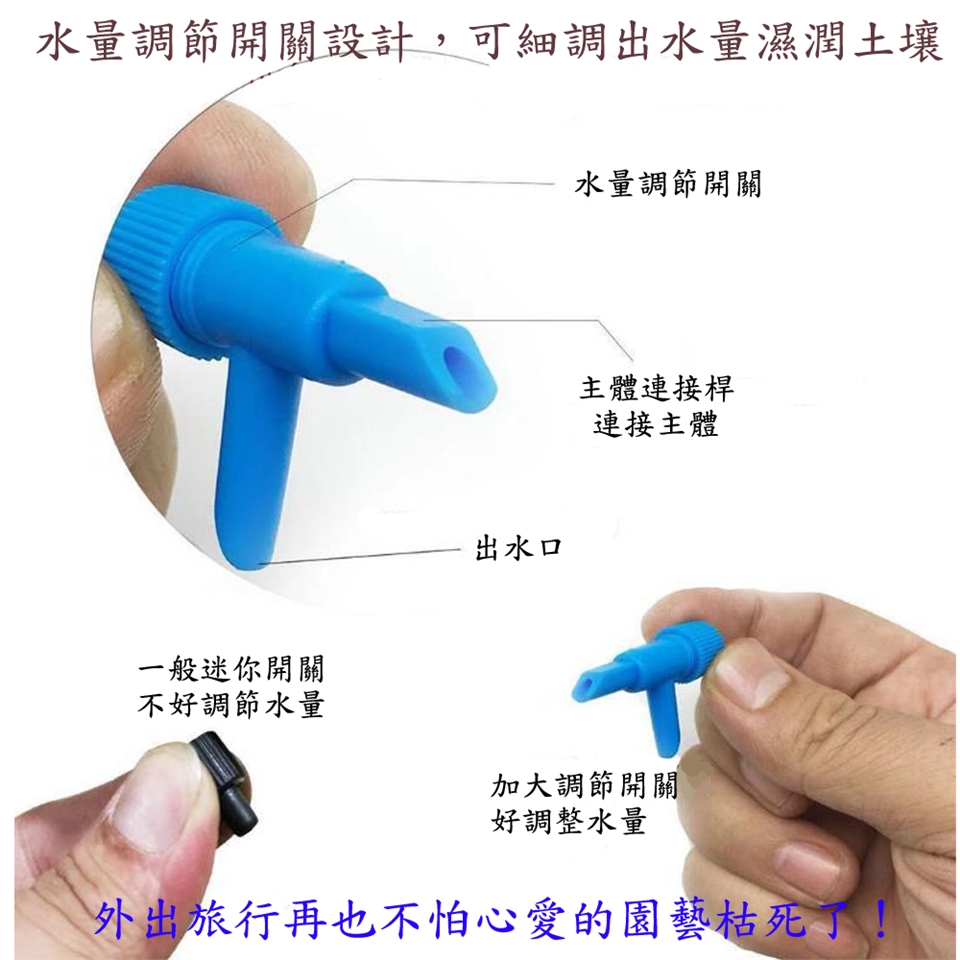 3.視土質、季節冷熱、空氣濕度等影響植物及土壤吸水因素不同,調整灌溉器的水量調節開關。
