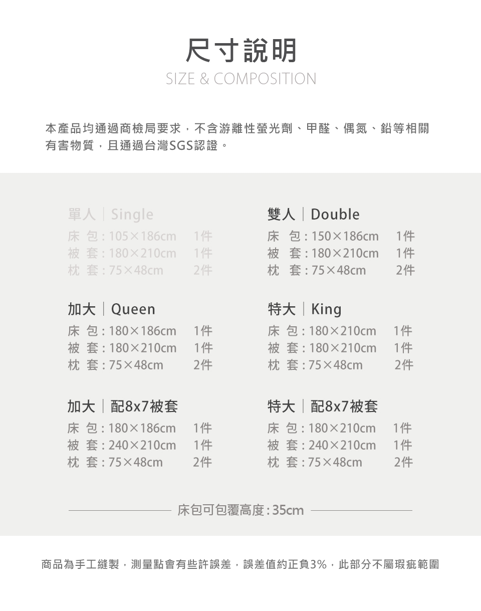 ◆當您收到商品時,請務必檢查商品尺寸規格是否正確,確認商品的完整性都相符後再下水洗滌。