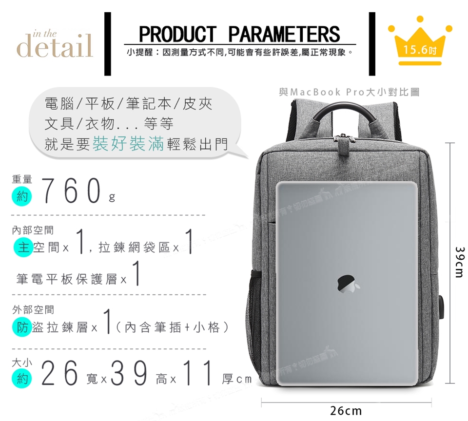 15.6吋 通勤日常 防潑水MacBook學生書包 上班族平板筆電後背包