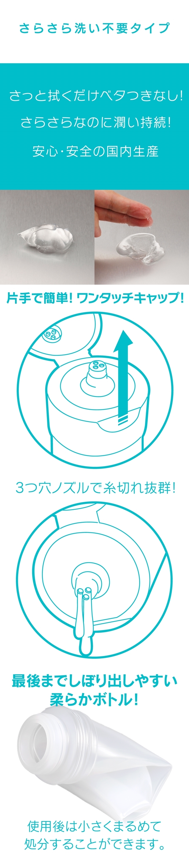 Ag+ Excellent Lotion 全新升級。搭配銀離子清新芳體,更能安全衛生的使用。濃厚Type不易乾燥,可長時間使用。此外,不會牽絲帶線。包裝瓶也設計得更好使用了。單手即可簡單打開關閉,玩樂途中也能方便使用的瓶身設計。