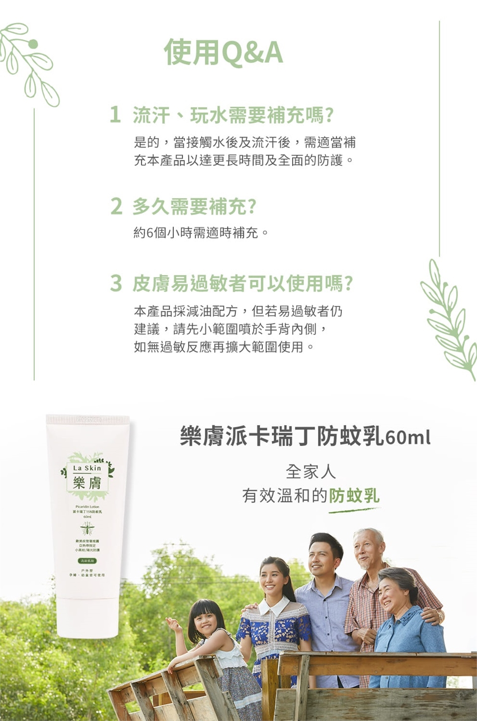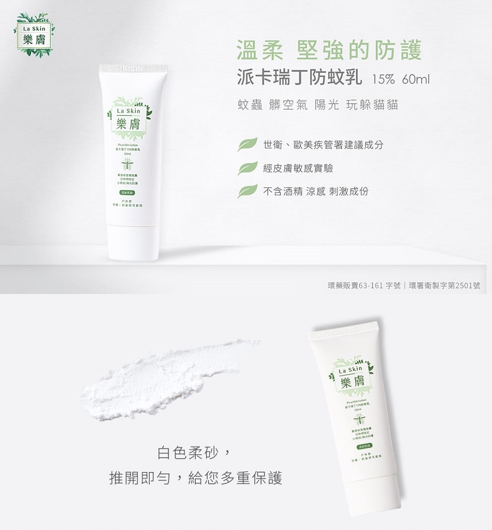 採用德國原廠 派卡瑞丁原液直送,針對亞熱帶潮濕悶熱氣候,台灣在地特調蘆薈清新配方,樂膚派卡瑞丁防蚊乳更清新、不黏膩。