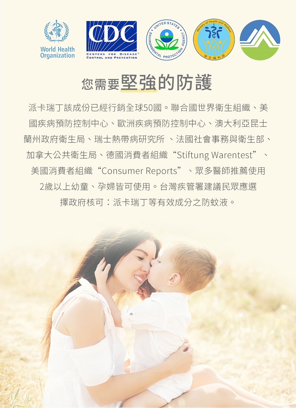 球50國。聯合國世界衛生組織、美國疾病預防控制中心、歐洲疾病預防控制中心、澳大利亞昆士蘭州政府衛生局、瑞士熱帶病研究所 、法國社會事務與衛生部、加拿大公共衛生局、德國消費者組織“Stiftung Warentest”、美國消費者組織“Consumer Reports”、眾多醫師推薦使用2歲以上幼童、孕婦皆可使用。