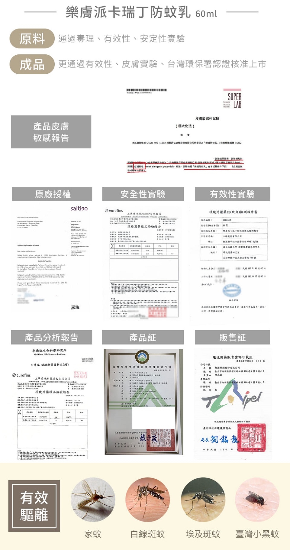 樂膚派卡瑞丁防蚊乳60ml 原料通過毒理、有效性、安定性實驗