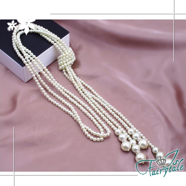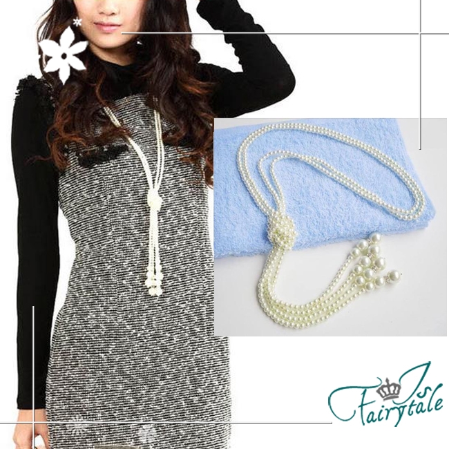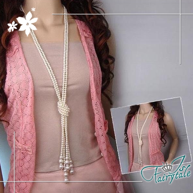 特殊能隨意打結珍珠鍊,率性掛放在身上,