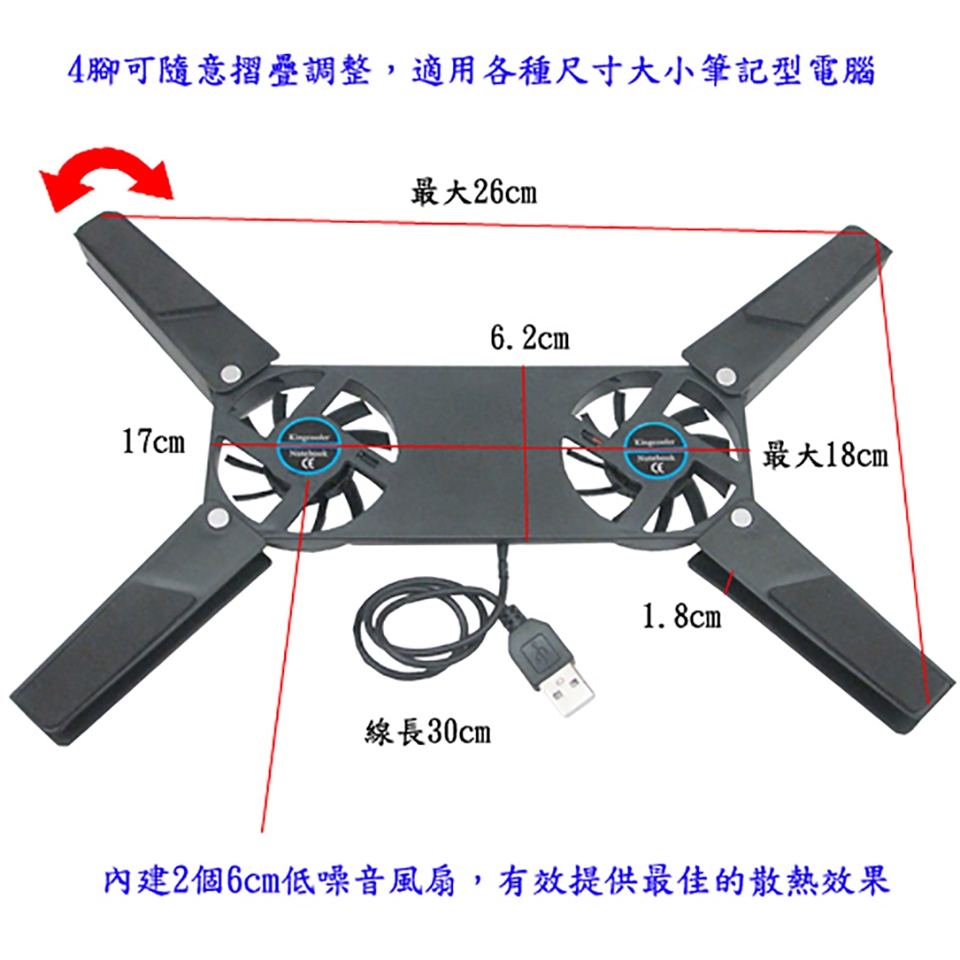 ■4腳可隨意摺疊調整,適用各種尺寸大小筆記型電腦。