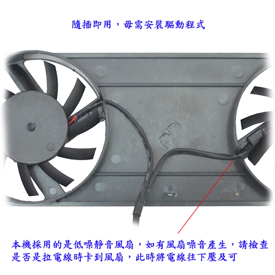 本機採用的是低噪靜音風扇,如有風扇噪音產生,請檢查是否是拉電線時卡到風扇,此時將電線往下壓及可。