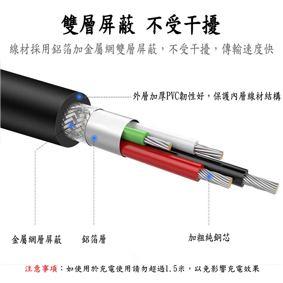 ■注意事項:如使用於充電使用請勿超過1.5米,以免影響充電效果。