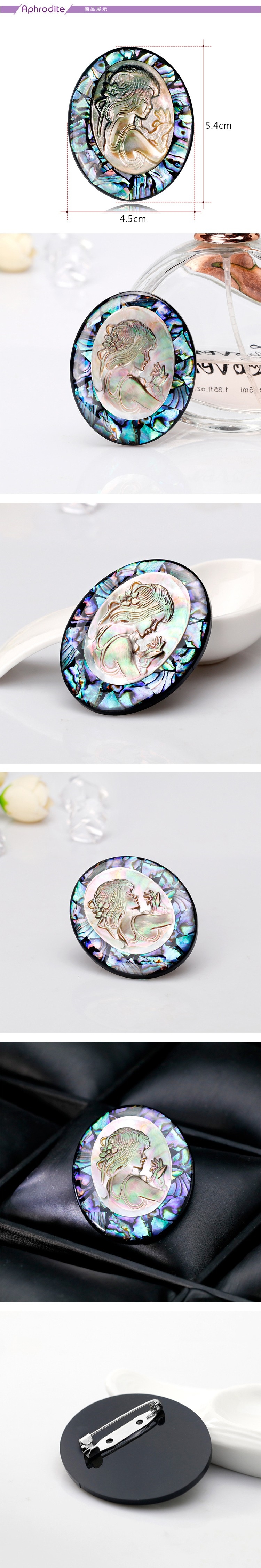 【愛芙晶鑽】天然鮑魚貝彩貝少女頭像古典橢圓胸針 造型胸針