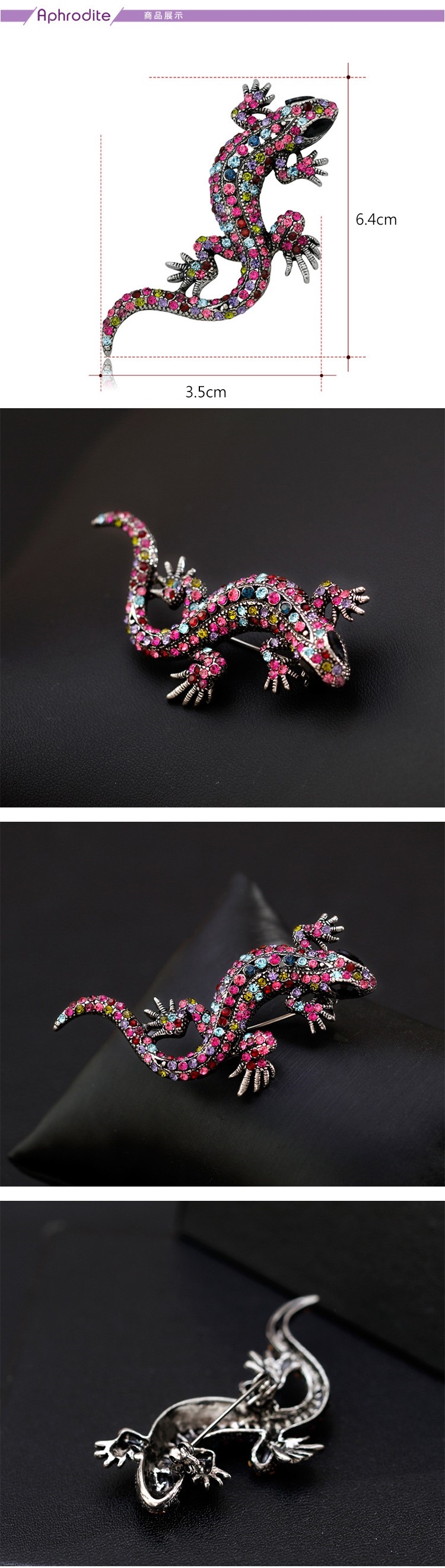 【愛芙晶鑽】時尚歐美風格彩鑽鑲嵌壁虎造型胸針  造型胸針 美鑽胸針