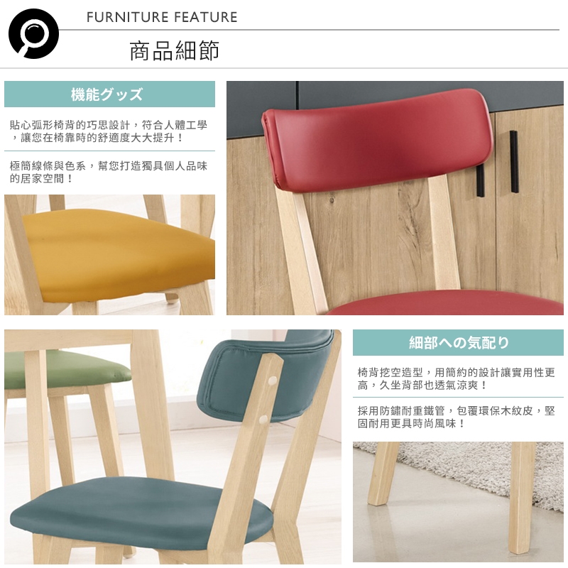 超值四入餐椅組合,不必費心搭配,讓整體更具一致性!