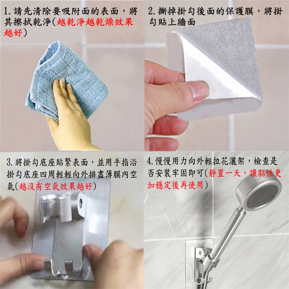 1.請先清除要吸附面的表面,將其擦拭乾淨(越乾淨越乾燥效果越好),撕掉掛勾後面的保護