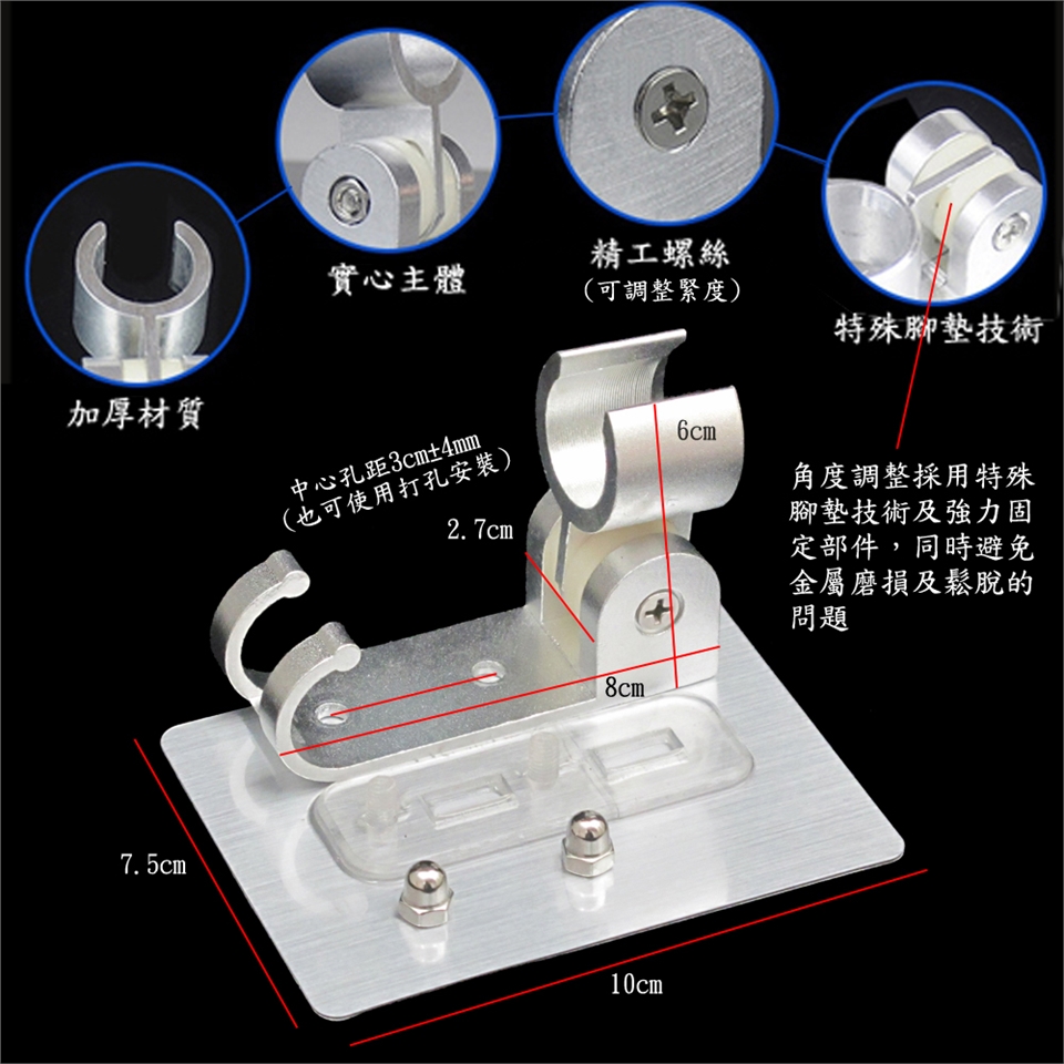 ■實用性月陽無痕太空鋁角度可調蓮蓬頭架花灑架帶雙勾。