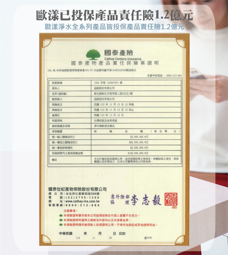 ● 消耗品(如;電池、燈管、濾芯類…等)則不享有1年保固。