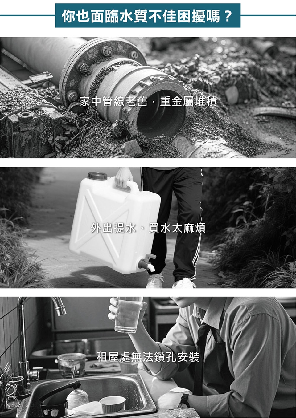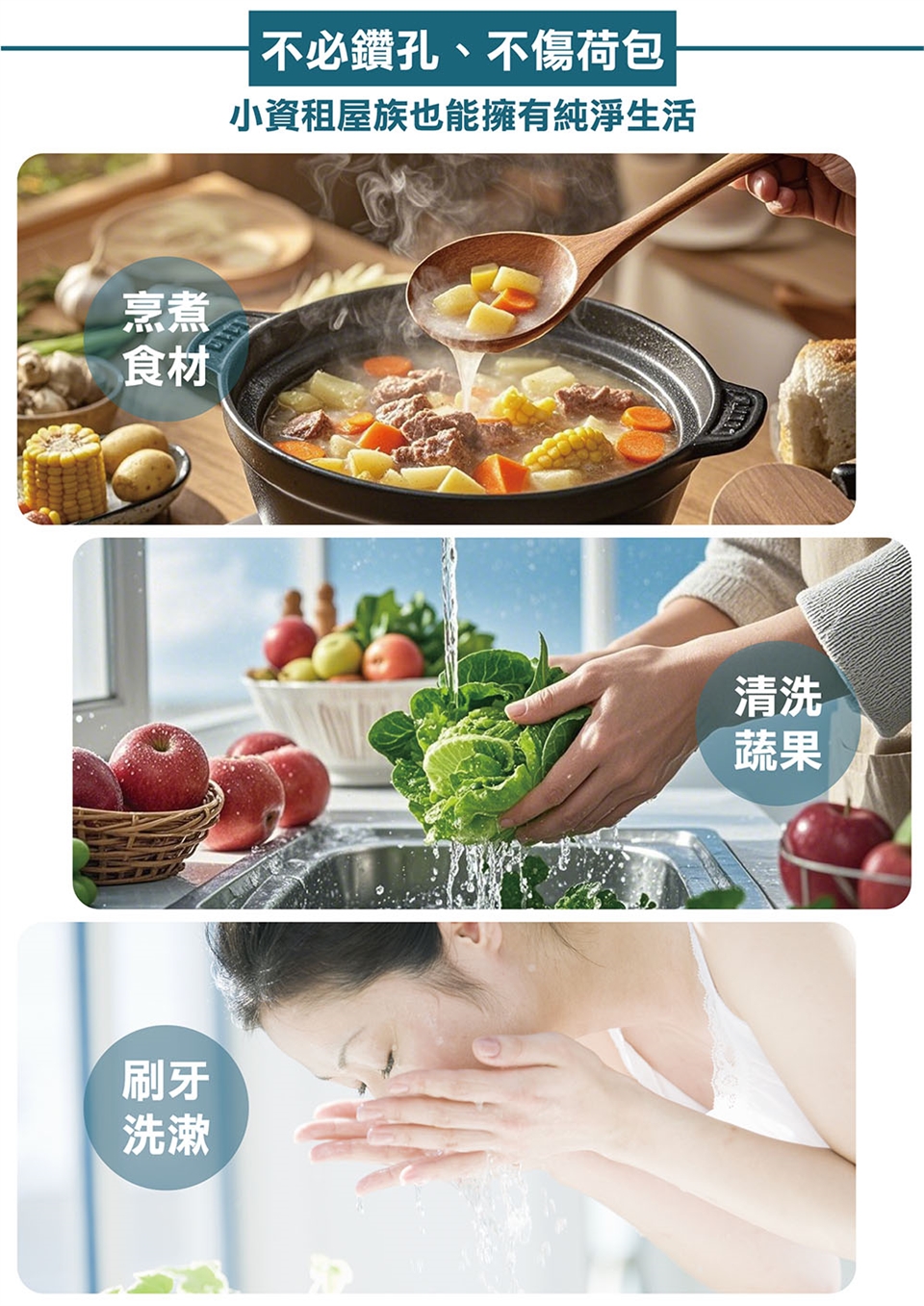 ● 五重過濾,不產廢水,煮沸後安心飲用