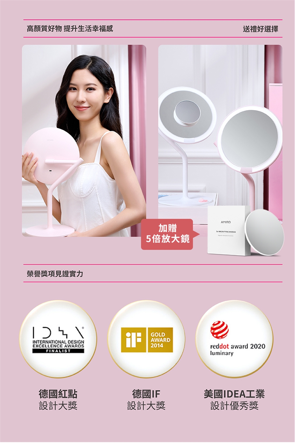 品名:AMIRO Mate S 系列LED高清日光化妝鏡-極簡白/櫻花粉