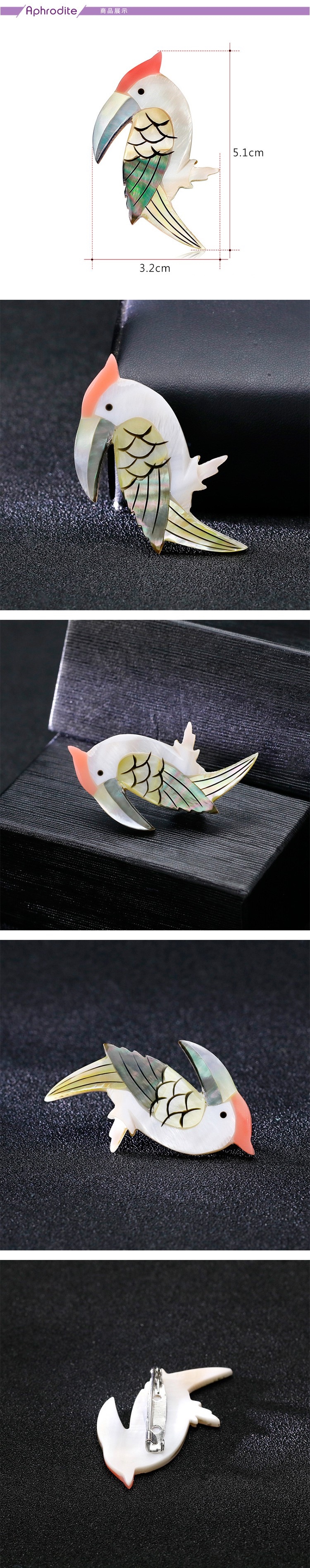 【愛芙晶鑽】天然鮑魚貝鑲嵌可愛啄木鳥造型胸針 造型胸針