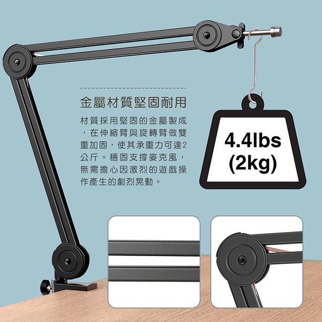 穩固支撐麥克風,無需擔心因激烈的遊戲操作產生的劇烈晃動。