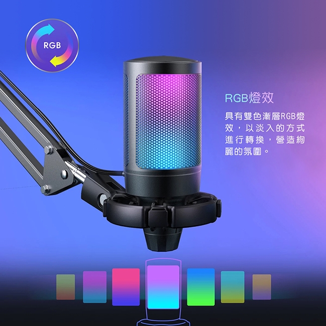 【FIFINE A6T USB心型指向電容式RGB麥克風】