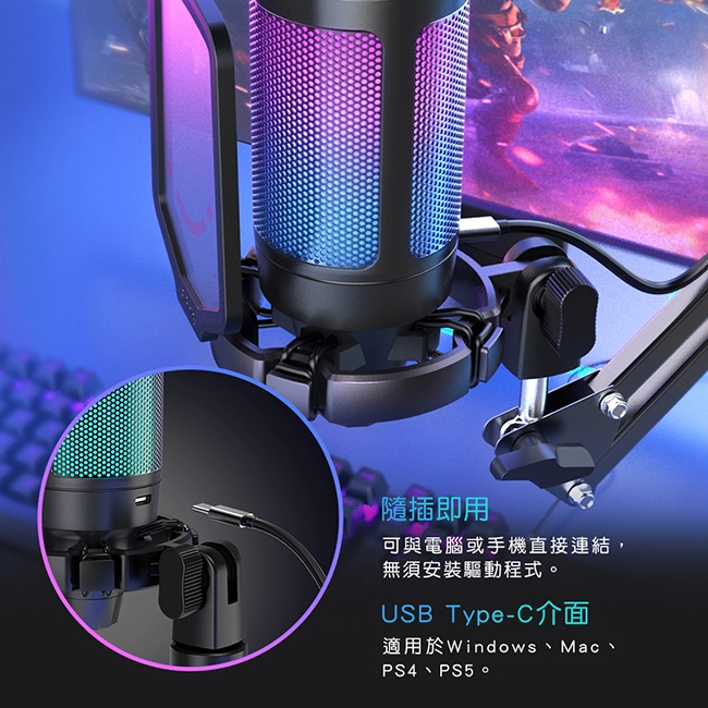 可用於直播、唱歌、遊戲語音通話、視訊會議、線上教學、PS4、PS5使用。