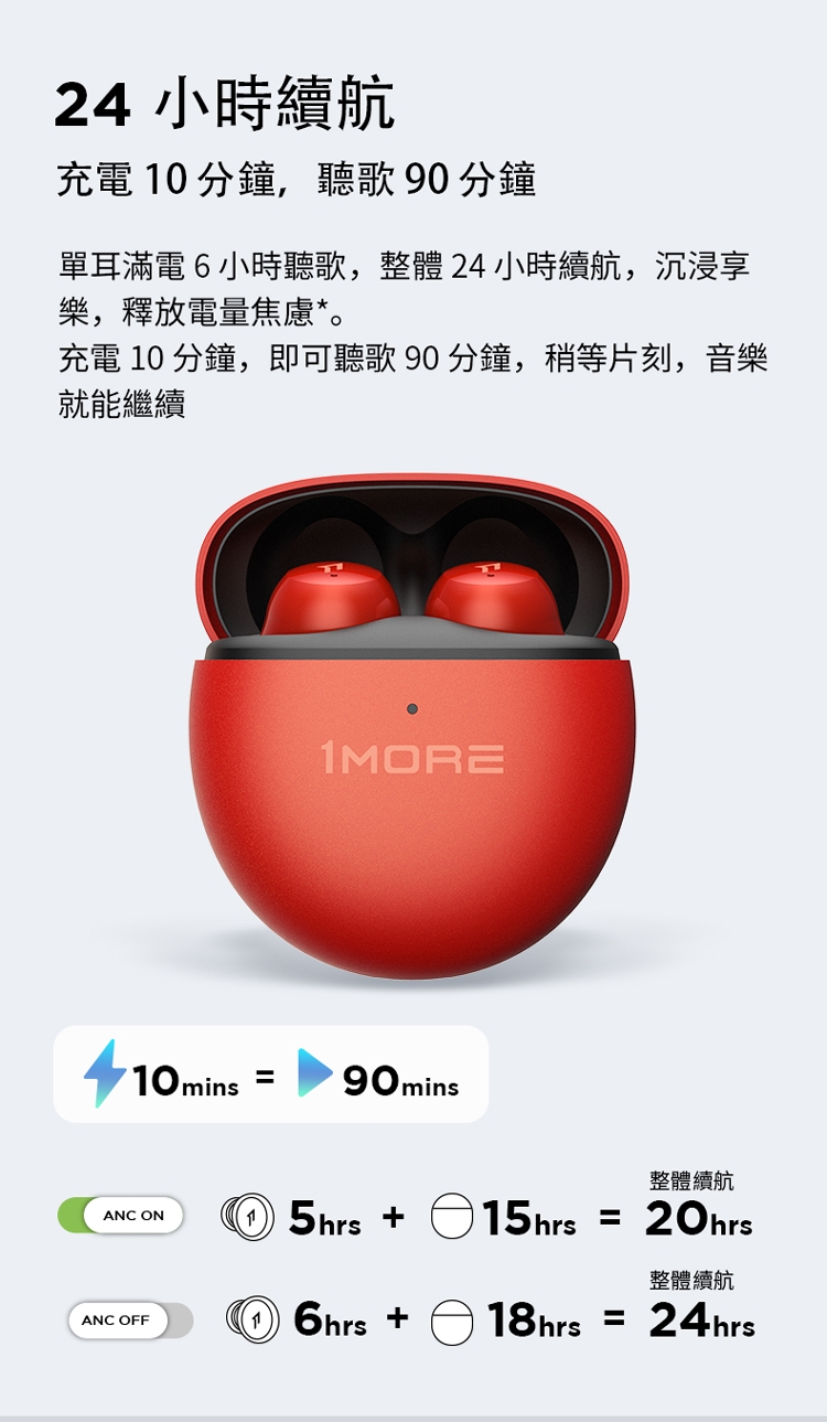 充電盒充電時間:90 分鐘(有線充電)