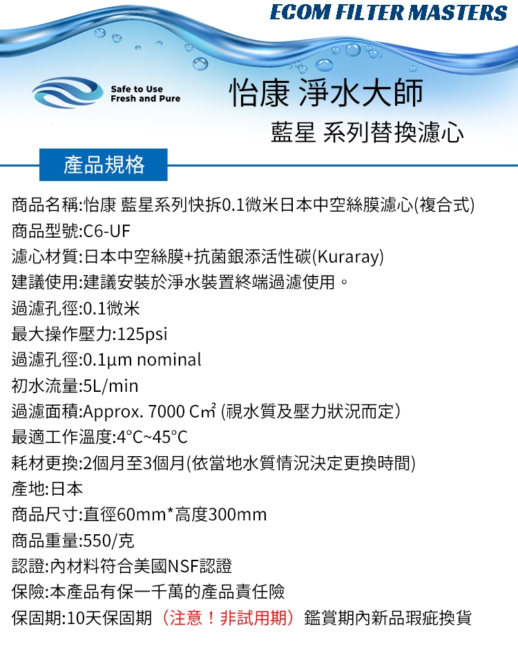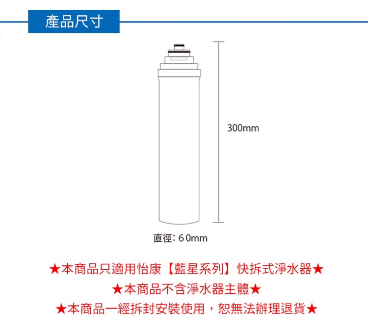 ★本商品只適用怡康【藍星系列】快拆式淨水器★