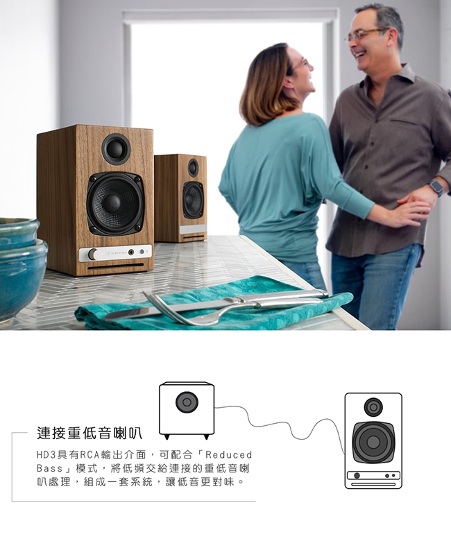 HD3具有RCA輸出介面,可配合「Reduced Bass」模式,將低頻交給連接的重低音喇叭處理,組成一套系統,讓低音更對味。