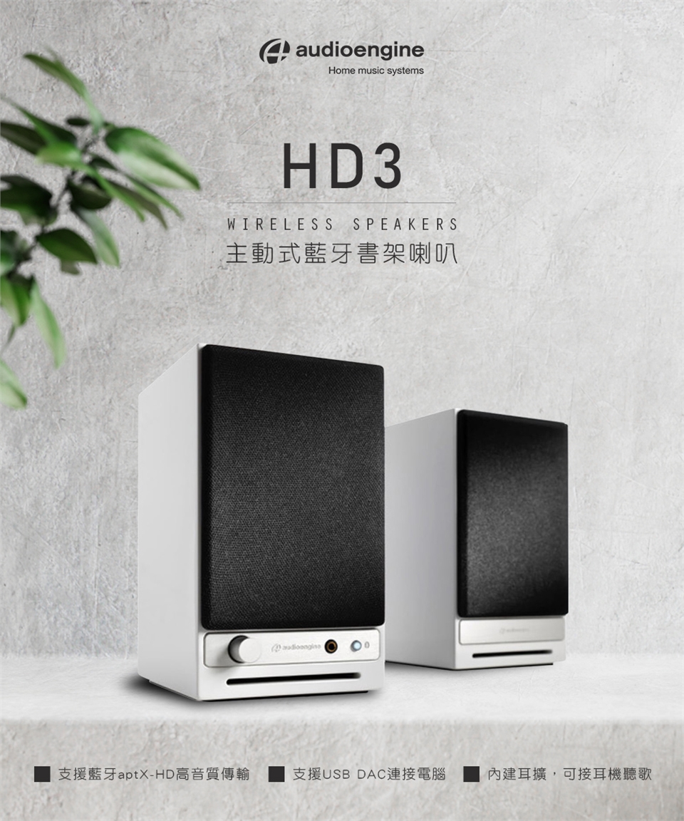 【Audioengine HD3 wireless主動式立體聲藍牙書架喇叭-白色款】