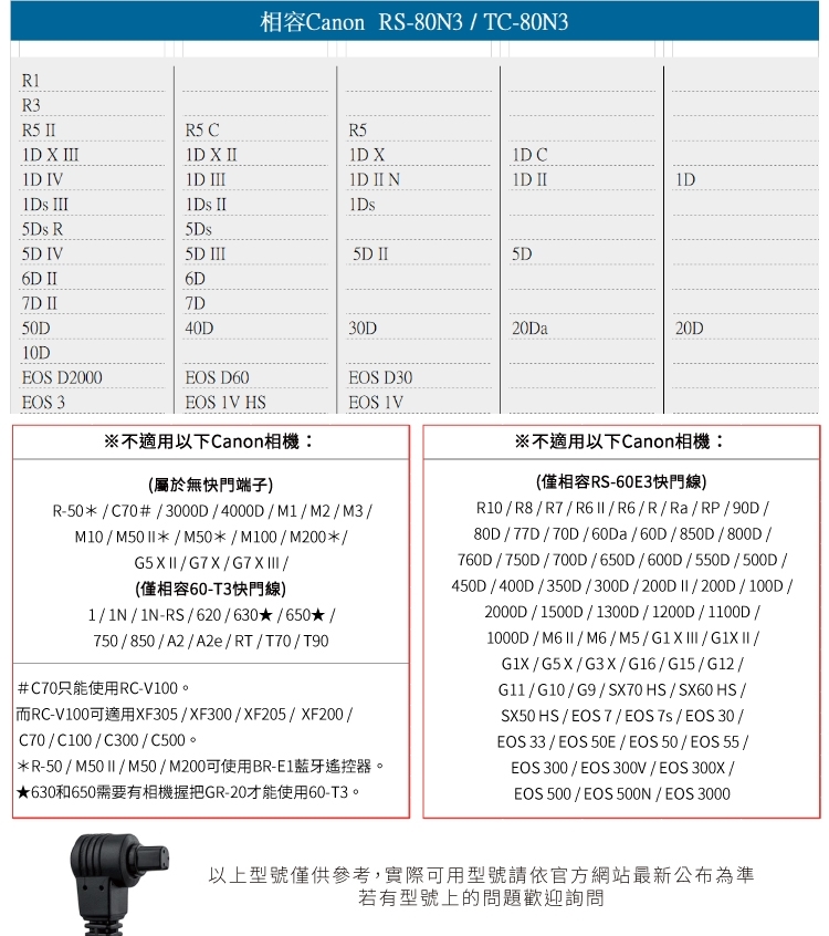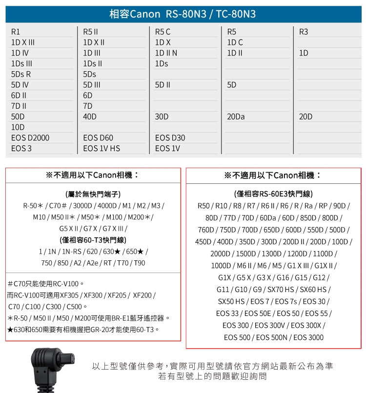 (相容Canon RS-80N3 / TC-80N3)