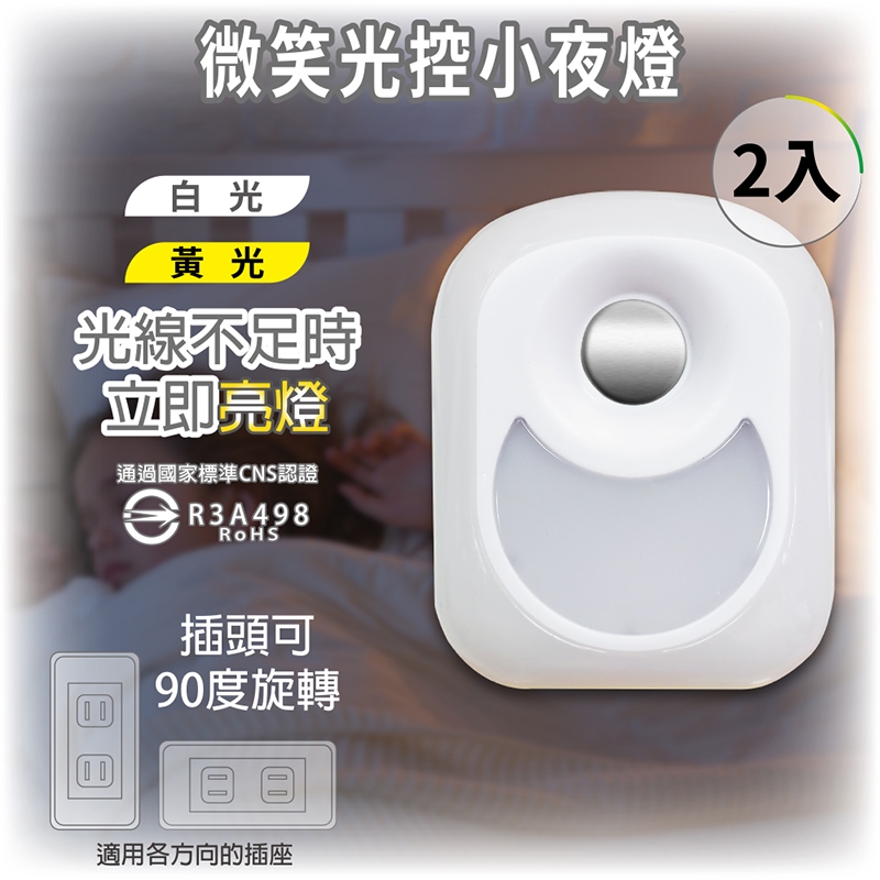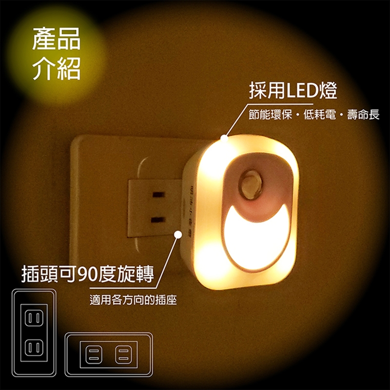 - 當光線大於7LUX時,小夜燈不啟動呈待機狀態,光線變暗時,小夜燈自動亮燈。