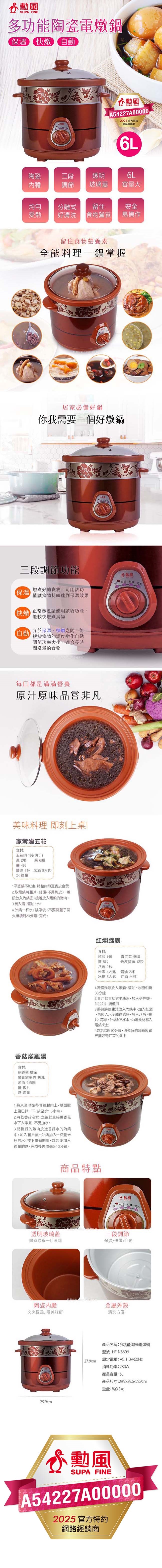 勳風 多功能陶瓷電燉煮鍋6L HF-N8606