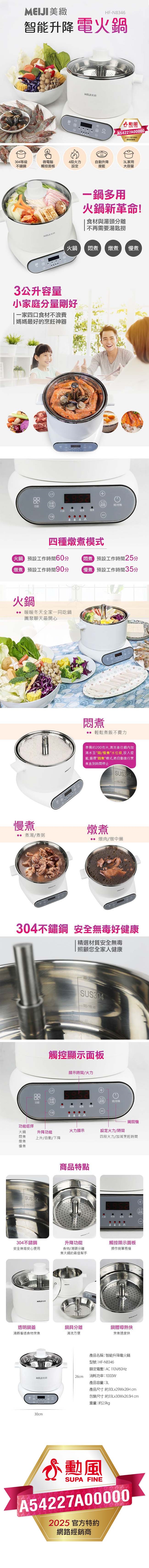MEIJI美緻 304微電腦智能升降電火鍋3L HF-N8346