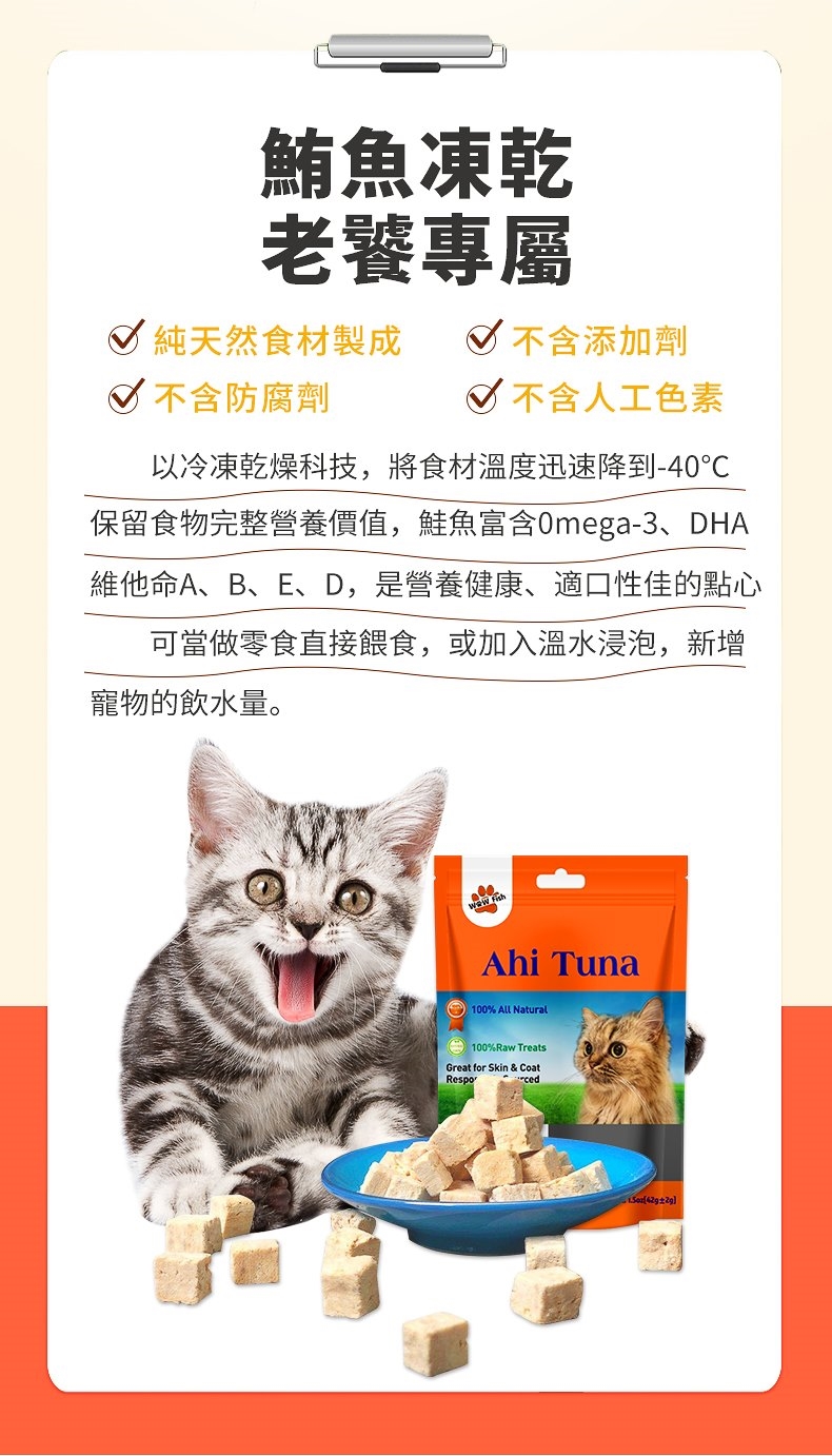 【餵食建議】可以直接餵食,準備乾淨的水浸泡食用,且增加貓咪的喝水量。