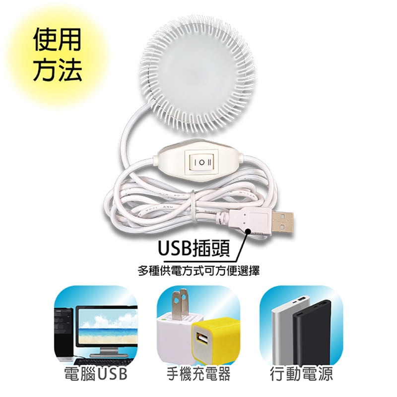 供電方式使用USB接頭,適用於任何5V USB輸出供電電源,如手機充電器、行動電源、電腦USB皆可以供電。