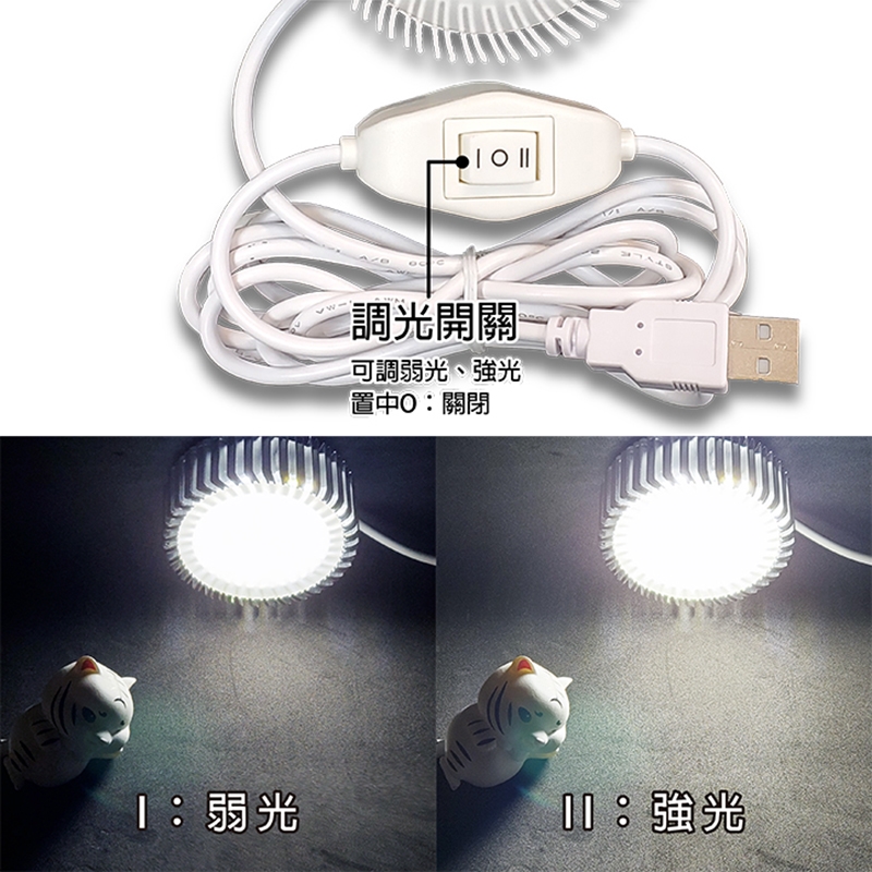 - 調光開關,2段式亮度選擇(強、弱光)、方便使用。