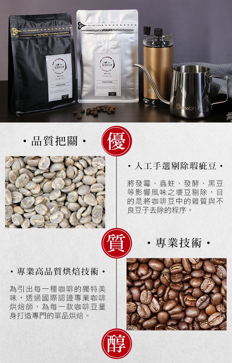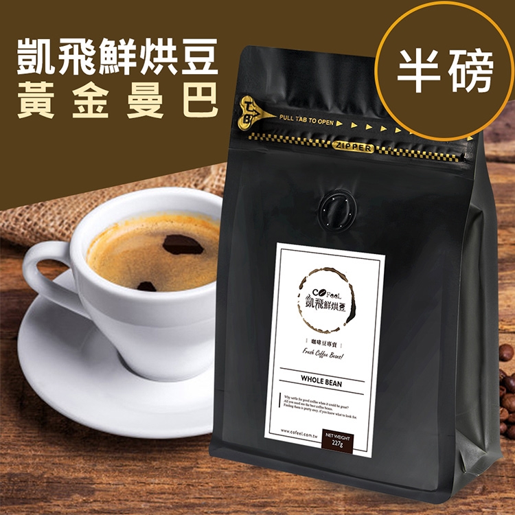 品名:CoFeel 凱飛鮮烘豆特調黃金曼巴中深烘焙咖啡豆半磅