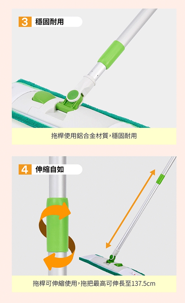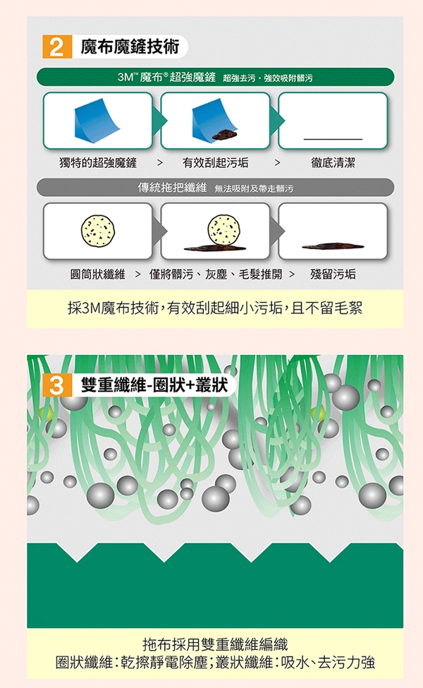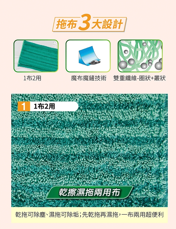 ◆ 乾拖可除塵、濕拖可除垢;先乾拖再濕拖,一布兩用超便利