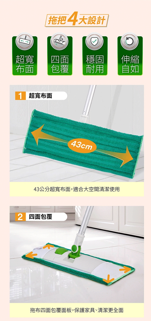 ★ 拖布四面包覆面板,保護家具、清潔更全面