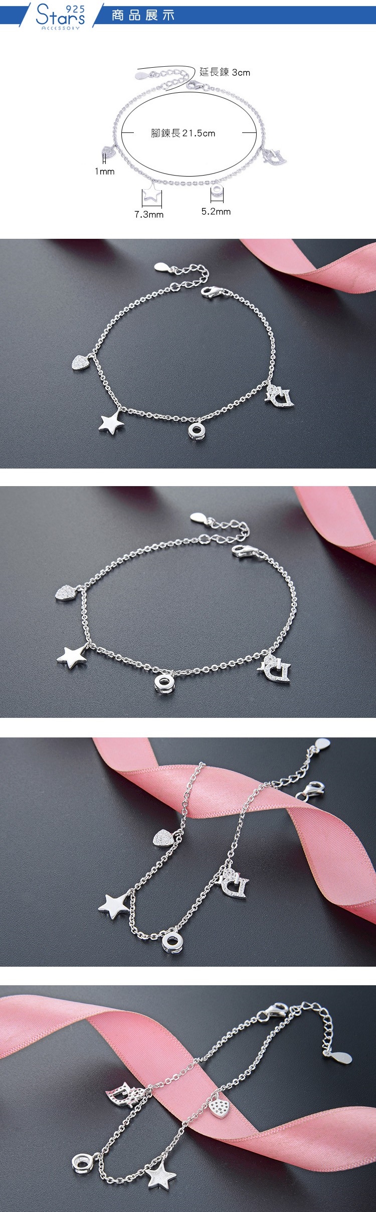 【925 STARS】純銀925微鑲美鑽可愛星星吊墜造型腳鍊 造型腳鍊 美鑽腳鍊