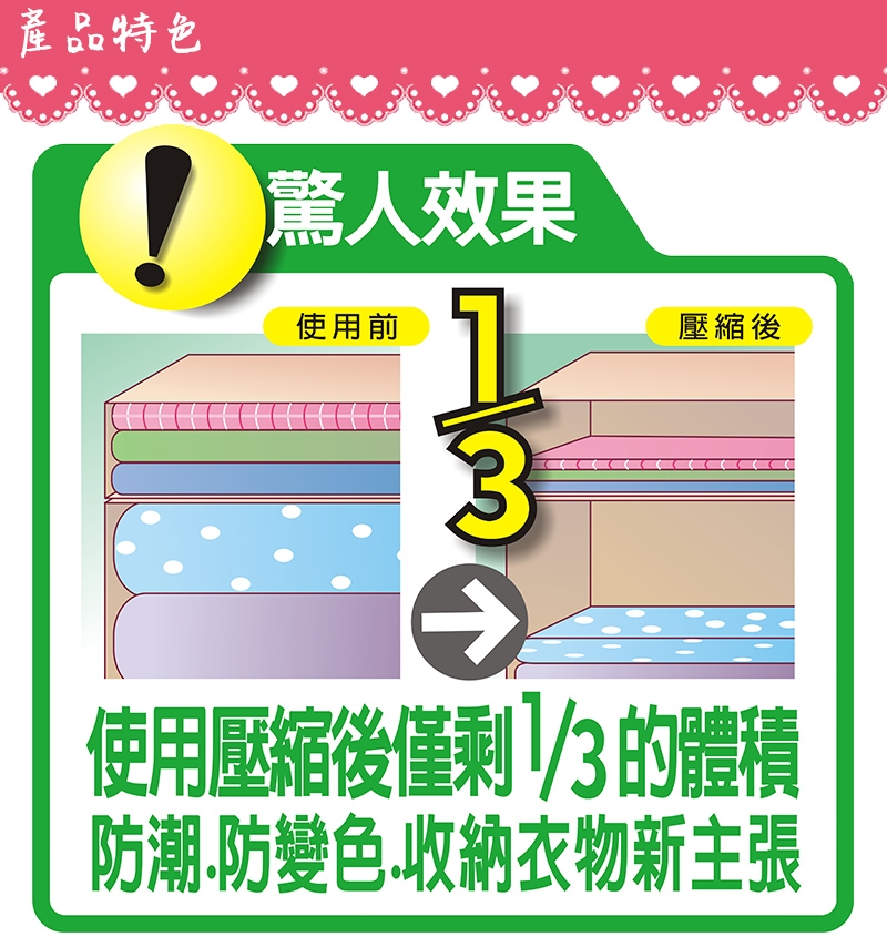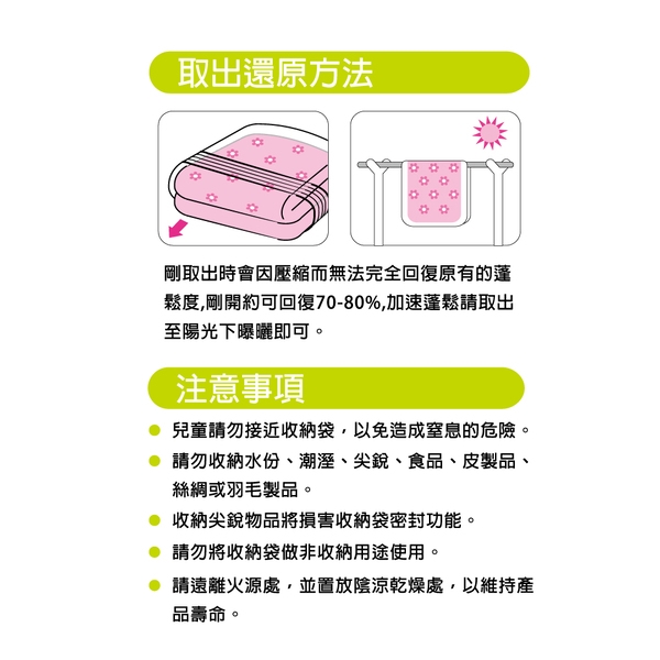 ■ 一般壓縮袋需一個月拿出檢查是否漏氣,百特製品可有效保存六個月以■ ■ 清洗時,請用清水擦拭即可。