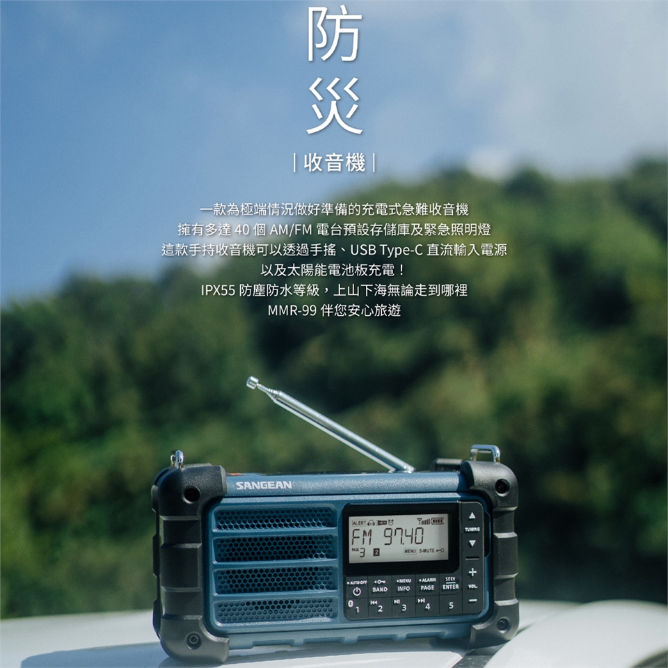 #SANGEAN #山進 #防災 #地震 #MMR-88 #MMR-99 #藍芽 #收音機 #防水防塵