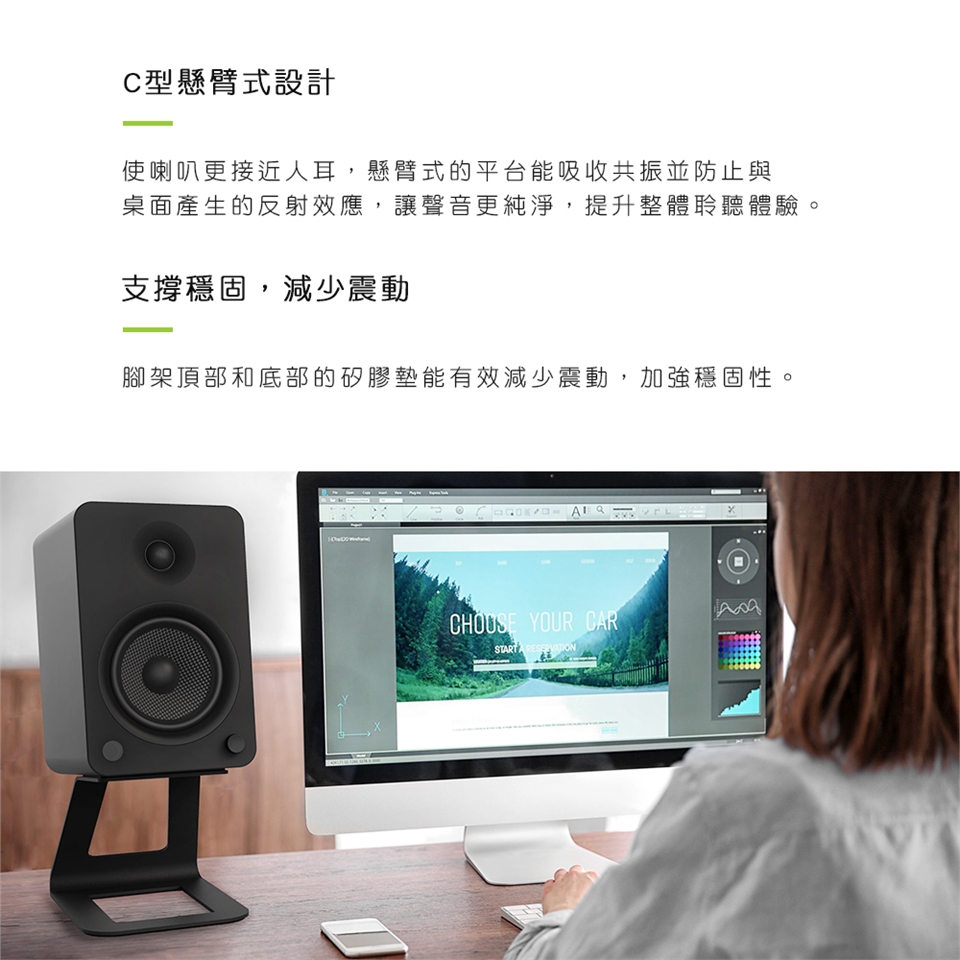 C型懸臂設計能降低共振,讓聲音更純淨。