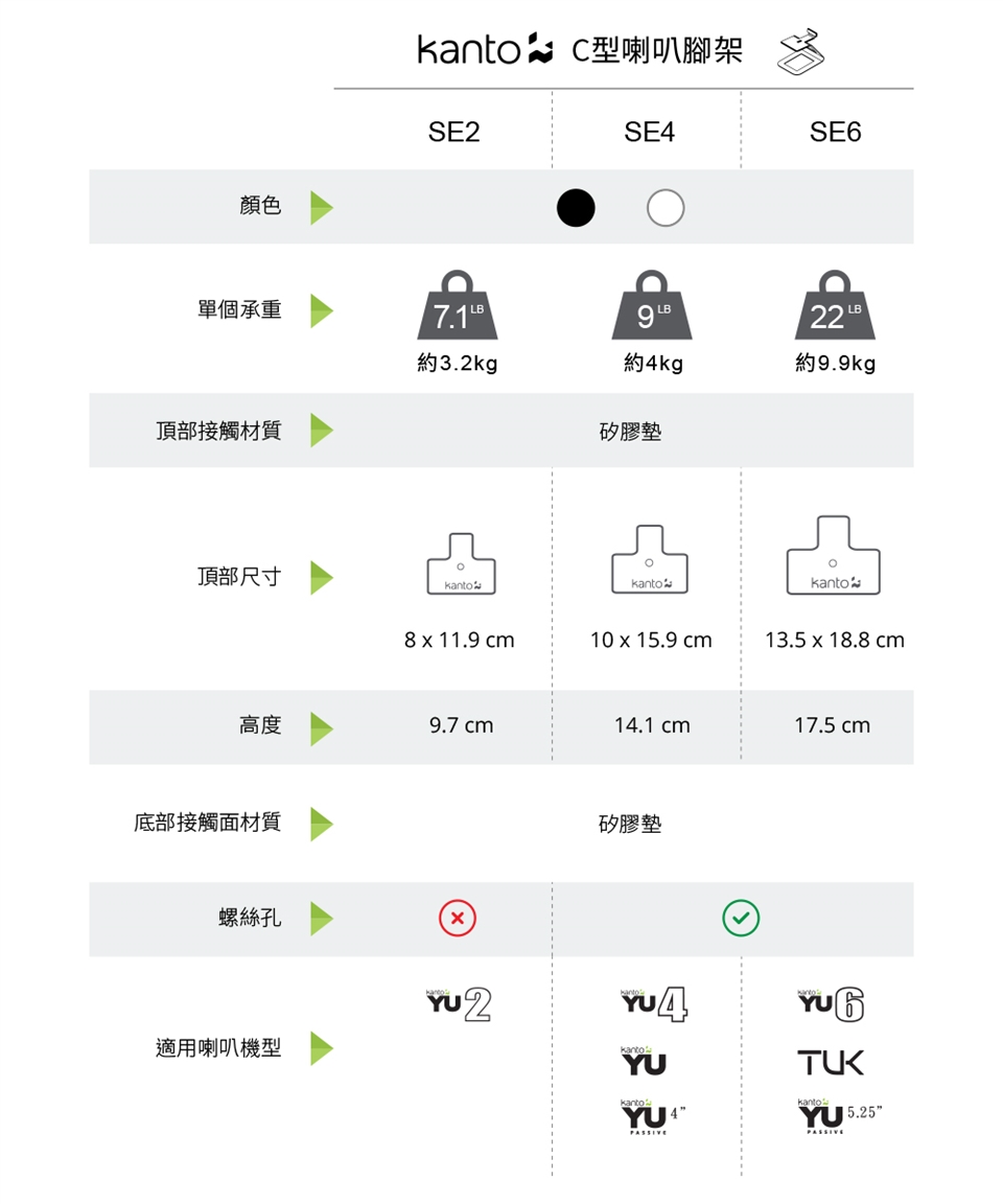 SE4承重可達4kg,適用KANTO YU4書架喇叭與4吋喇叭。