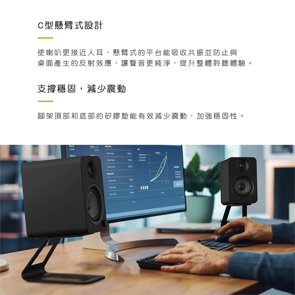 C型懸臂設計能降低共振,讓聲音更純淨。