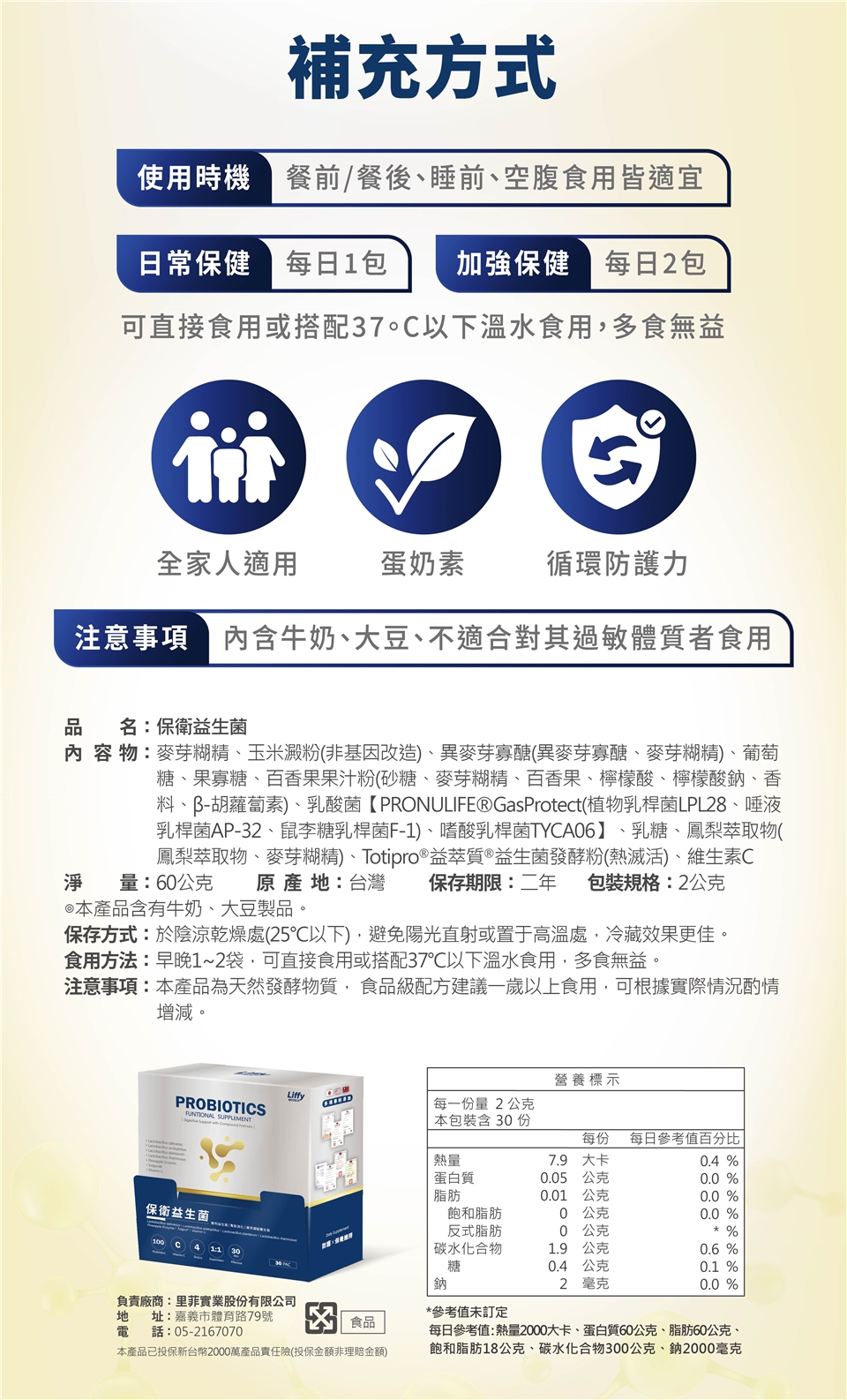 早晚1~2袋,可直接食用或搭配37℃以下溫水食用,多食無益。