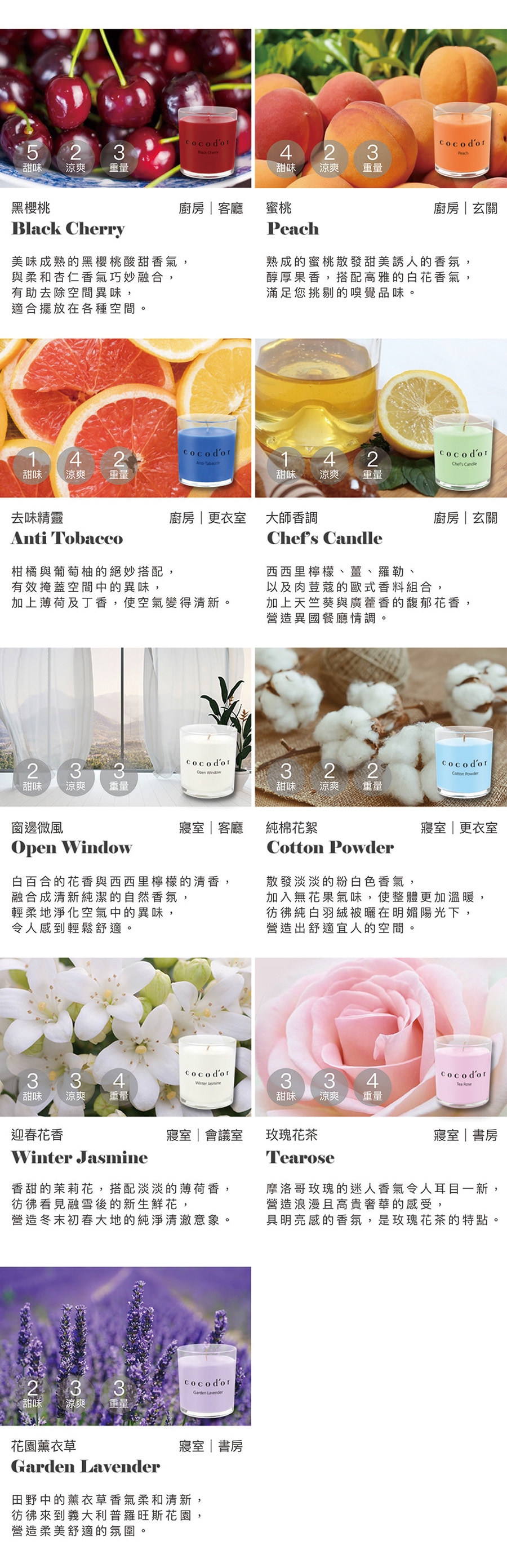 .棉花Cotton Powder、迎春花Winter Jasmine這兩款香味因原物料天然色差,產出的蠟燭顏色會有白色或藍色,隨機出貨,介意者請斟酌下單